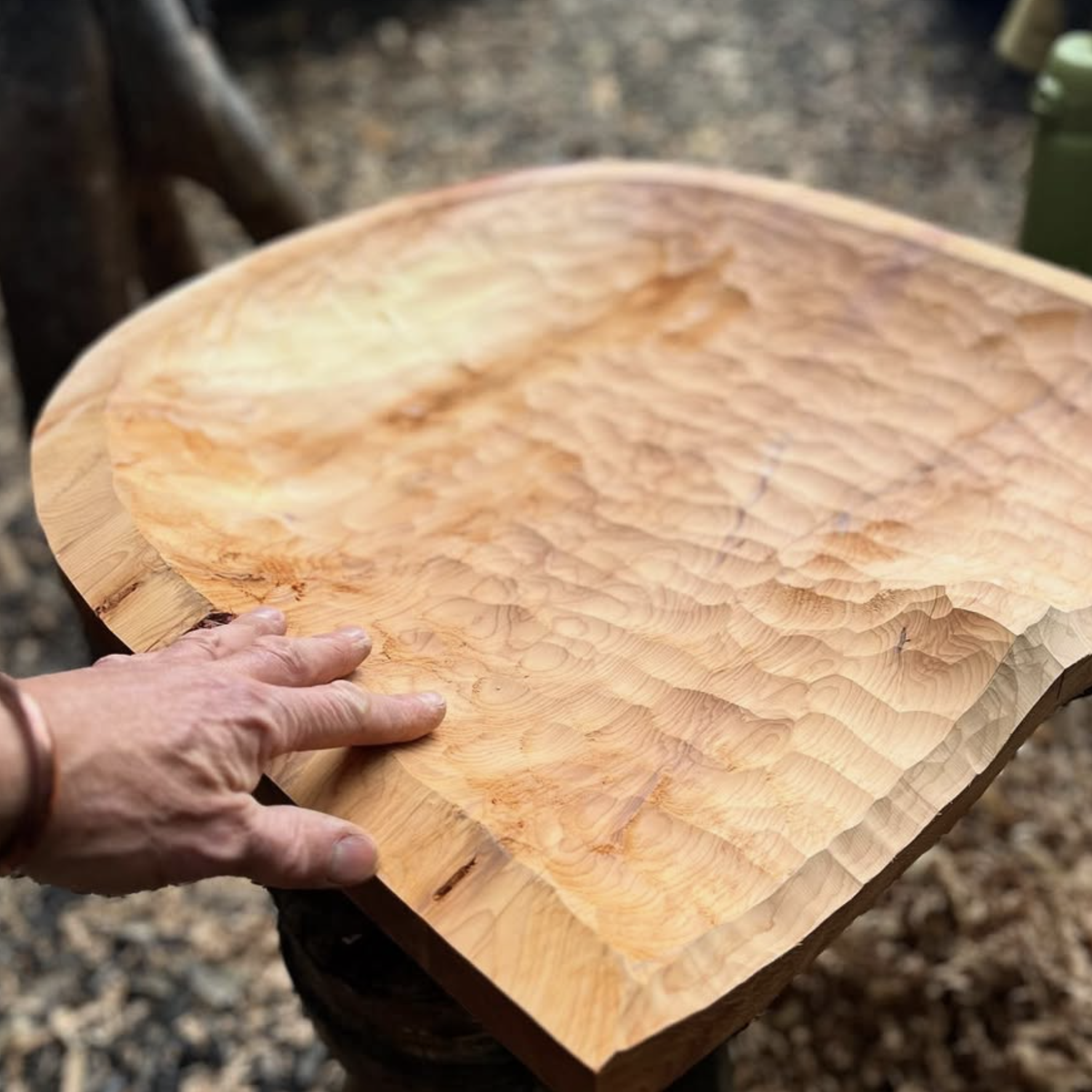 I employ an Adze to create the unique shape of the seats as well as utilising an axe, drawknife and shavehorse.
