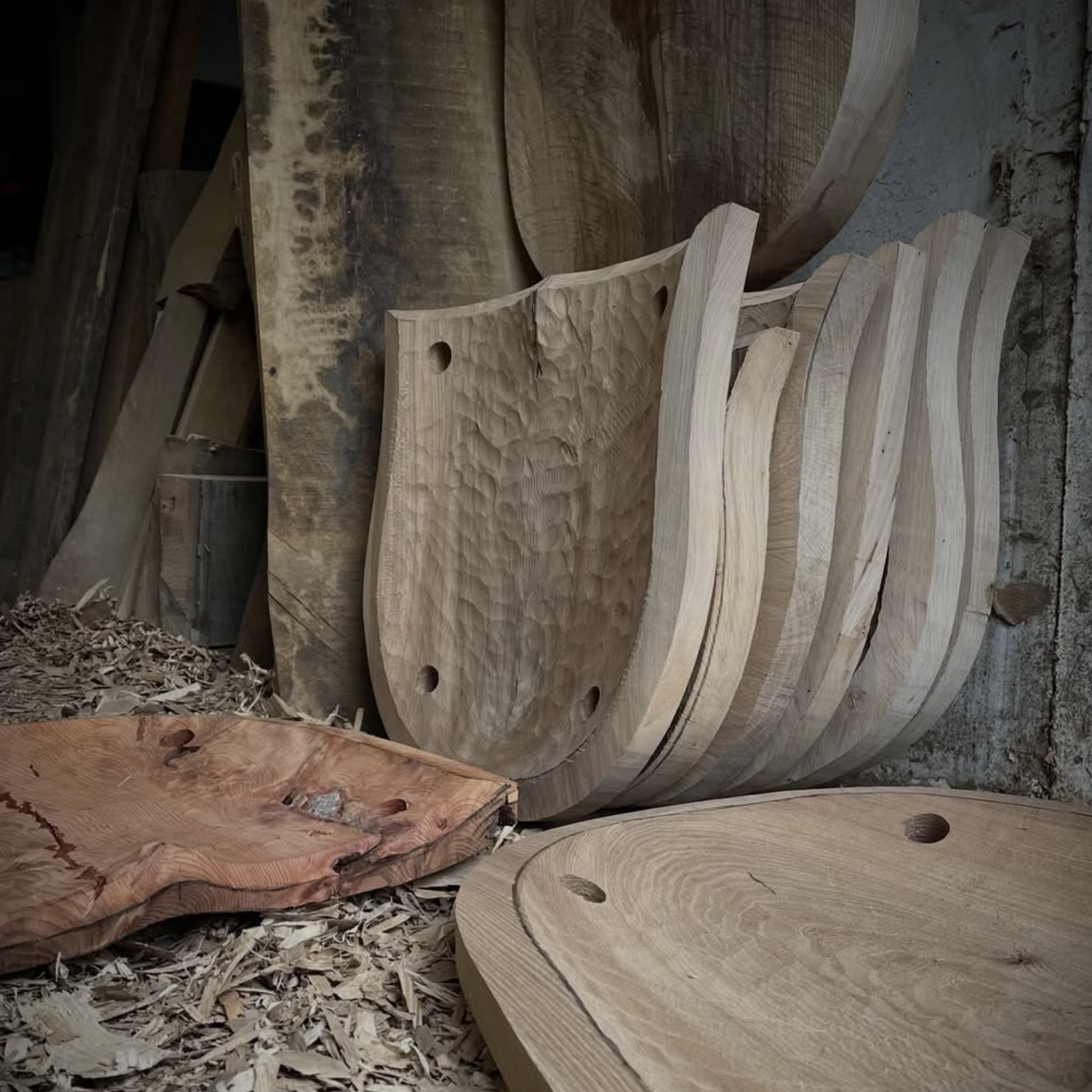 I use local seasoned Oak and Ash as the materials alongside metals such as Goldleaf, brass and solder to highlight the profiles of my pieces. The end product combines comfort, elegance and function.