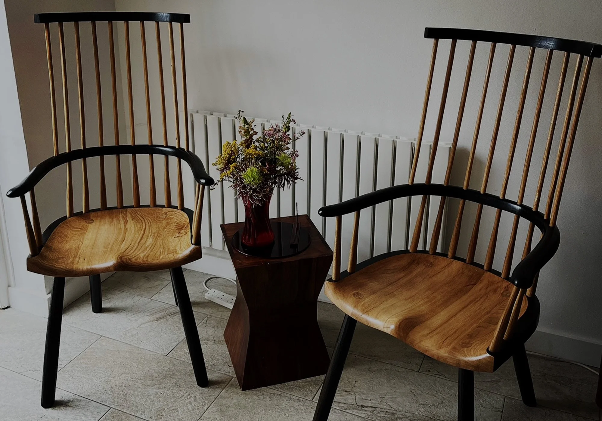 “We had two stunning stools made for our narrowboat. They are works of art. And so very comfortable. We use them more than anything else on the boat! Neil Is a master craftsman and very easy to “work with”. Fabulous pieces of furniture, comfortable, stylish and easy to fall in love with”